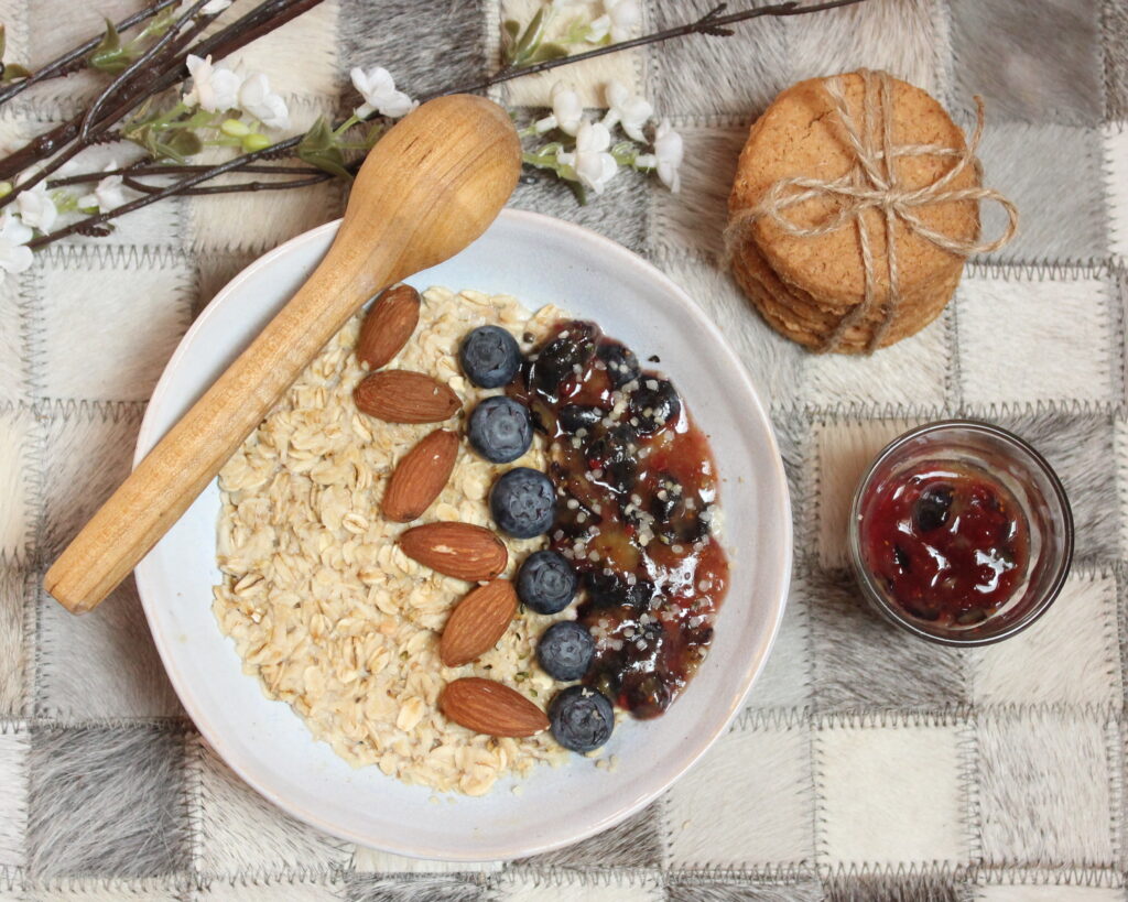 - Ovsena kaša sa par badema, kakaom i bananom ili drugim voćem